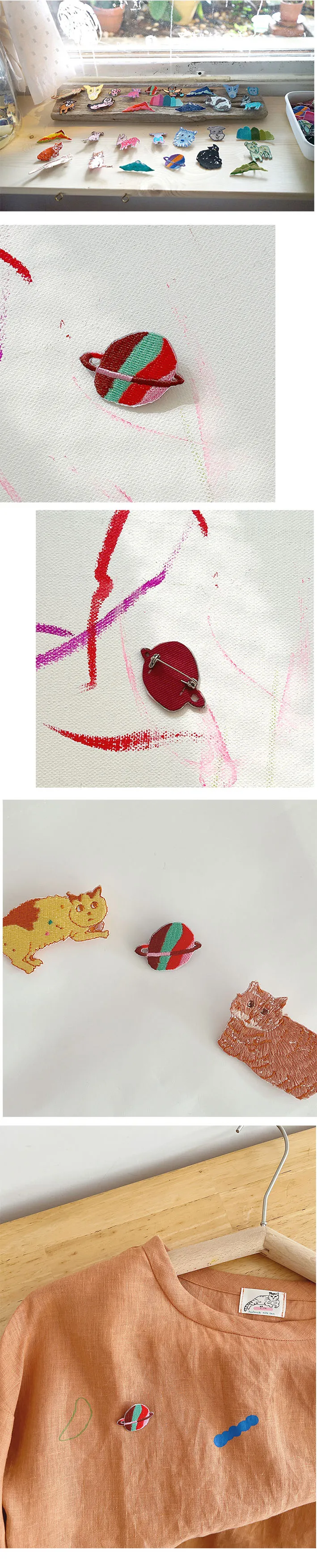 Yinke 紅綠星球細緻刺繡別針 / 貼布